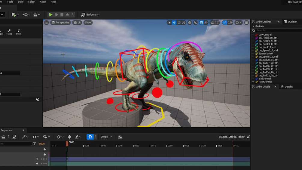 A T-Rex Model Rigged in Unreal Engine 5 Control Rig - Project Download